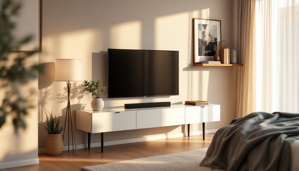 - Proper styling elevates any bedroom TV stand by keeping 60% of surfaces clear, using cable management clips or sleeves, and adding vertical wall décor above the TV to frame it as a design element rather than an appliance.